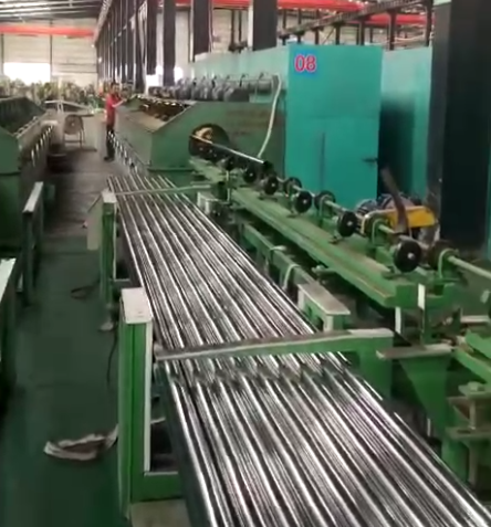 功能介绍:该设备连接到抛光机,结合机械手臂原理通过气缸动作将管材逐支排列整齐,再通过传动升降机构把排列好的管材逐层整齐码垛。